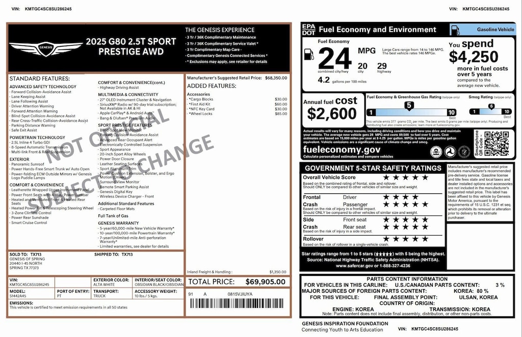 2025 Genesis G80 AWD 2.5T Sport Prestige