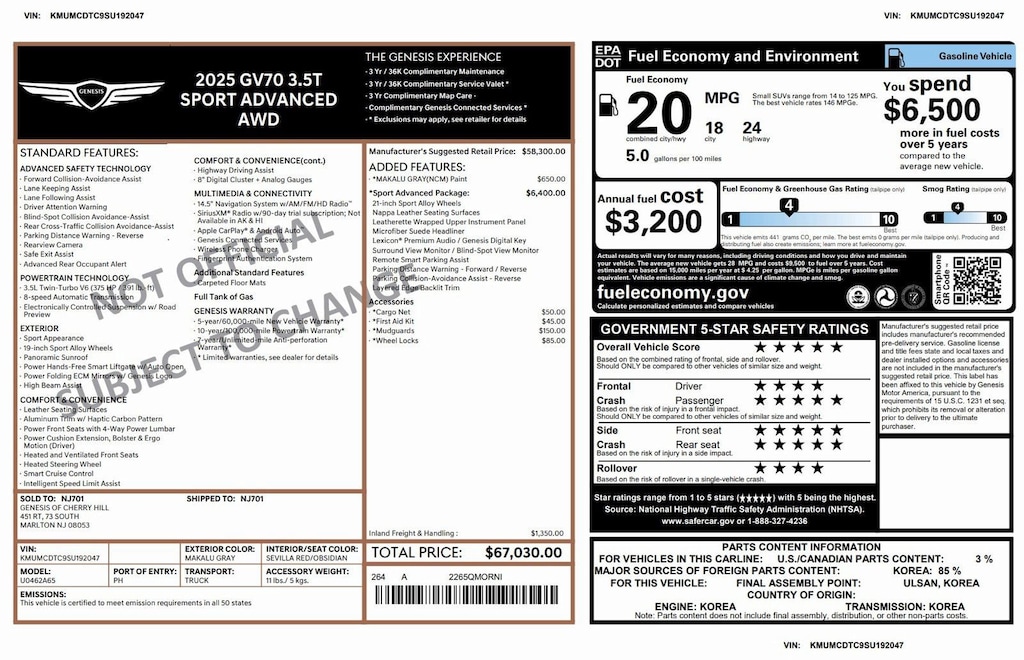 Certified Pre Owned 2025 GenesisGV70 3.5T Sport