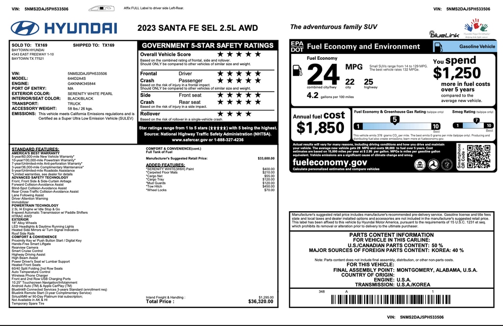 We replaced our Lexus GX460 & BMW 330i X-drive with this ‘22 Santa Fe Calligraphy and could not be happier. Drives much like the BMW without the turbo lag the 330 had. Tech blows away the GX. Can honestly say that it is my favorite car that I have ever owned. I had ordered a new Tesla Model Y and after looking at the Calligraphy found it far better looking inside and outside. HUD is my favorite feature and it is not even offered on the Tesla. The $10k I saved buying the Santa Fe over the Y will buy my gas for the next 70000 miles… Who needs the limits of electric…… - 5.0