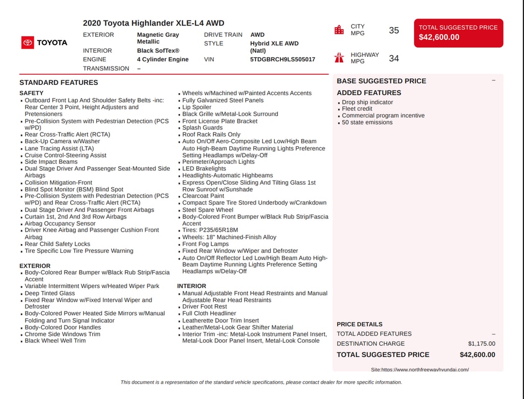 We've now owned our 2024 Highlander Hybrid Platinum for 4 weeks, and, so far, couldn't be happier! I was happy to discover that the regular Highlander Hybrid is still available (the Grand is too big for us). What we love: - The quiet all-electric drive under 20 mph - VERY PLEASED with the additional sound attenuation (acoustic noise-reducing front side windows) Toyota added. The loud acceleration roar of the 2022 I test-drove is largely gone - The “Car” display option that shows how the energy flows, from the ICE and two electric motors to the batteries and wheels - The 12.3” main Display and the 12.3” digital instrument panel unique to the Platinum trim – with clear, sharp images that display useful trip, safety and navi information. The main screen menus are reasonably intuitive (even without a Home button) - The Cloud-based navigation now rivals Google Maps – although ETAs are initially inflated. After the free 12-mo. trial this requires a $15/mo. subscription; we’ll see if it’s worth keeping - The seamless, wireless switching from Android Auto (for me) and Apple CarPlay (for my wife), based on whose phone is detected - The improved location of the wireless charging tray in the center dash area (in the 2022 it was in an awkward lift-up tray in the center console). This has enabled removal of a windshield-mounted wireless charger that partially obstructed forward-left view - The ECO drive mode which emphasizes electric motor usage, most appropriate for our driving style (we’re both retired, drive about 11k miles a year, north and south, and certainly won’t need Trail or Sport modes) - MPG: The instrument panel showed 33.7 mpg after 800 mostly city miles. But then I drove 100 highway miles, and watched it drop to 32.0 – the opposite of a gas-only car. I estimate a fuel savings of about $3800 over 6 years of expected ownership (at forecasted fuel costs) - The Head-Up display! Never had this – find it helpful to see the speed limit, car speed, and Eco-indicator reflected at a focal point just beyond the windshield - Folding side mirrors -- also with blind-spot indicators, defoggers, turn signal lights, and auto backup adjusting. Should save us from unwanted parking lot encounters with people or cars - The fixed rail mount points shifted rearwards about 8”, making rear-loading of kayaks easier, and our Yakima crossbars still fit (though I did need new landing pads molded to fit the modified flush rails) - Several USB-C&A charging ports, forward and aft (my wife has wallet on the back of her iPhone, so wireless charging won’t work for her) - A slide-open, lighted center console storage compartment – easy to get at without lifting the armrest and helpful to find items that tend to get lost in the large space - The color! The exterior is a steel-blue “Moon Dust” and the interior is the same beige we like. We’re happy that we didn’t have to settle for dark colors in sunny Florida - A Consumer Reports score of 85 and a reliability rating of 75/100 – both the highest for 3-row midsize SUVs (CR gives you the best unbiased road test, reliability and owner satisfaction scores) What we’re mixed about: - Rear-window visibility is diminished by the smaller glass area due to the more streamlined roofline (side view mirrors and the 360-degree display view compensate for this) - The digital panoramic rear-view lever-activated mirror – while handy when the cargo area is loaded to the gills, the camera-fed display suffers from loss of depth-of-field, glare, and the dizzying constant motion of cars and scenery - The driver’s seat height adjustment doesn’t go as high – or maybe it’s that the hood is higher due to an extra hood hump on both driver and passenger sides. It was a noticeable when we initially got the car, but even my wife who is only 5’3” seems to be okay with the diminished road visibility - The HomeLink buttons have been moved to the rear-view mirror, but the new menu-driven programming requires a working remote – which we did not have! (Got a new remote and then it was a snap) - Automatic Profile switching to auto-adjust driver’s seat settings based on who is driving, doesn’t work (requires entering a passcode). No big deal, we just press our memory seat button on the door - Hands-free rear hatch opening: Car must be locked and foot must be swung quickly under the sensor on the left side of rear bumper. We probably won’t use this – it’s easier to just press the button under the handle, which works whether car is locked or not. - AWD: We don’t need this as this car never sees Winter snow. But it also adds a second electric motor in the rear. So, net-net it’s a plus, and as all 2024 Hybrids seem to come with AWD, we really had no choice - Somewhat higher step-up height and cargo platform (~2”?), to make more room for the hybrid’s batteries stored under the passenger compartment - The ambient lighting that added $449 to the price. It’s kind of cool and helpful at night, and has a separate app to change the colors, but I’m sure the cool factor will wear off quickly What we don’t like: - NO DISCOUNTS! The Hybrid, and especially the Platinum trim, still need to be special-ordered, and thus command MSRP, plus whatever add-ons your local distributor decides to install (we did get the dealer to remove the way over-priced $699 ToyoGuard Platinum (2 oil changes, 4 tire rotations in years 3-5, roadside and rental assistance which we get from AAA). Thankfully, gone is the $$$ upcharge that dealers were adding to MSRP during the post-Covid years - The pull-up cup holder between the second-row captain seats is replaced by a fixed plastic holder bolted to the chassis, losing the convenience of extra storage / passage space between the seats. I found a video on removing it and fashioned an all-weather cover for the bolt area by carving up the old cargo area matt - The cheap fabric carpeting that added $499 to the car price. But n