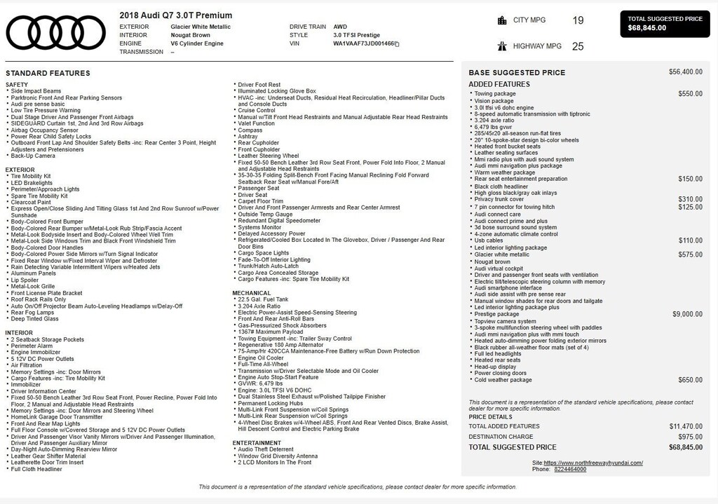 Overall I have been pleased with my Q7, but I would suggest that any potential buyer invests in time-consuming due diligence to truly understand what is necessary for the maintenance of a performance vehicle. I experienced loud brake squeaking around 15,000 miles and was told that I would most likely need to replace in the span of a few months. At 20,000 miles I have been advised that my tires and brakes need to be replaced. This is very common amongst Audi and the Q7. It is a critical missing piece to truly understand the cost of ownership and I think it is important for the consumer to know. Other than that, the Q7 fits my needs offering a usable third row without the large size. It is somewhat generic interior is unimpressive. The technology within is fun, and like most new things, can be glitchy at times. Overall it is reliable.… - 5.0