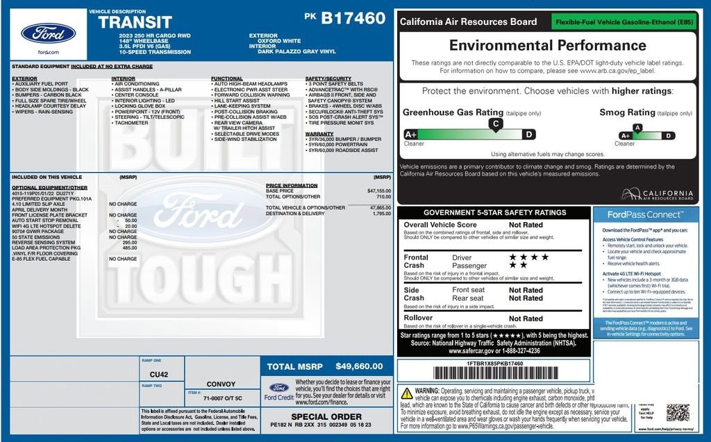 2023 Ford Transit 250 Base features a 3.5L PFDI V6 Engine with a Load Area Protection Package ($485 option)!