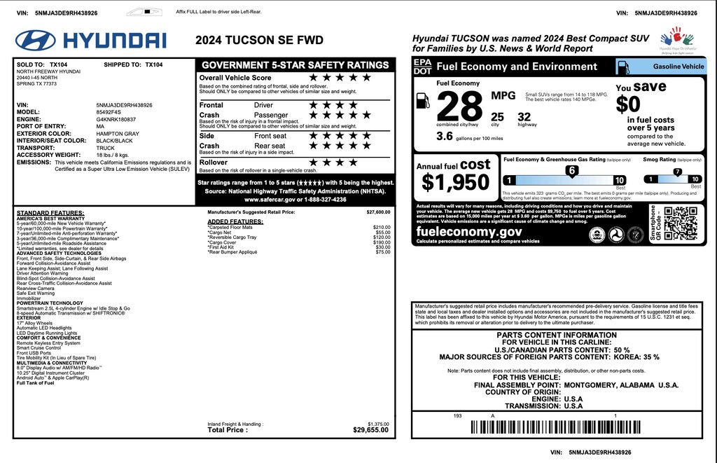 The safety you need and the features you want at a great price! With fewer than 15,000 miles on the odometer, this 4 door sport utility vehicle prioritizes comfort, safety and convenience. Top features include remote keyless entry, a trip computer, rear wipers, and air conditioning. It features an automatic transmission, front-wheel drive, and a 2.5 liter 4 cylinder engine.