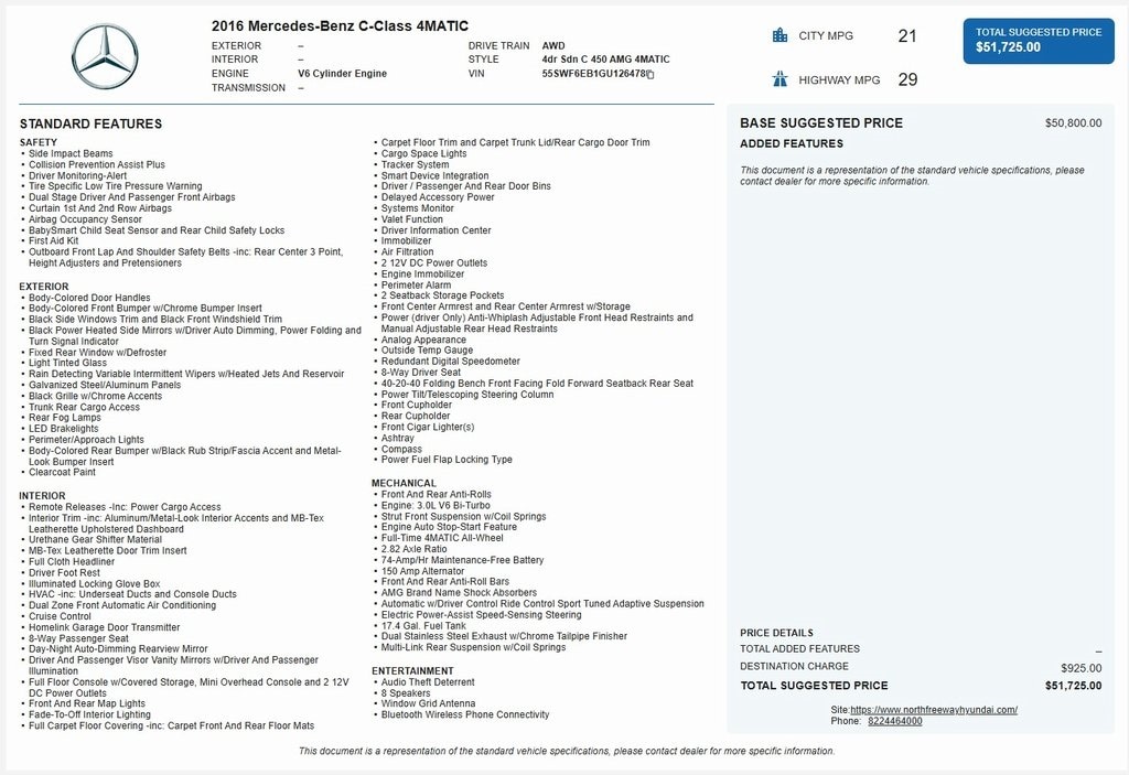 2016 Mercedes Benz C450 AMG 4Matic with 84,146 miles 3.0L v6 engine and 7 Speed automatic transmission. Polar White exterior and Ebony interior. 18" AMG 5-Spoke Alloy Wheels, Power Seats w/Memory, MB-TEX/DINAMICA Upholstery, Radio: HD AM/FM Single Disc CD/MP3,Aluminum/Gloss Black Trim,4-Wheel Disc Brakes, Premium audio system: COMAND, Emergency communication system: mbrace2,AM/FM radio: SiriusXM,Compass,8 Speakers, Child-Seat-Sensing Airbag, Auto-dimming Rear-View mirror, Weather band radio, Variably intermittent wipers, Turn signal indicator mirrors, Trip computer, Traction control, Tilt steering wheel, Telescoping steering wheel, Steering wheel mounted audio controls, Steering wheel memory, Sport steering wheel, Split folding rear seat, Speed-sensing steering, Speed control, Security system, Remote keyless entry, Rear window defroster, Rear side impact airbag, Rear seat center armrest, Rear reading lights, Rear fog lights, Rear anti-roll bar, Rain sensing wipers, Radio data system. One Owner! Located in Spring, Texas on Interstate I-45 North minutes from The Woodlands, Tomball and Conroe. CALL US CLICK US COME SEE US 832-446-4000.