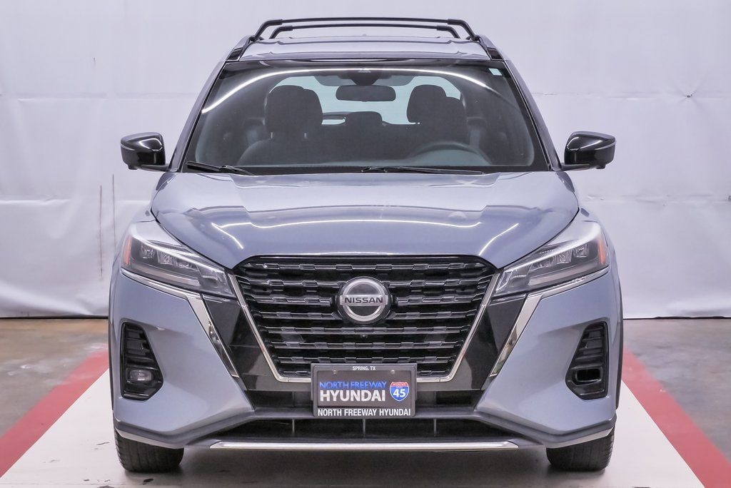 2021 Nissan Kicks SR with 98,167 miles 1.6L 4cylinder engine and automatic transmission. Boulder Gray Pearl Exterior and Charcoal Interior. 17" Alloy Wheels, Rear Roof Spoiler, Splash Guards, Remote Engine Start, Hands Free Text Messaging, Bluetooth Hands Free Phone System, Streaming Audio Via Bluetooth, Rearview Monitor, Nissan Intelligent Key, 7" Advanced Drive Assist Display, Android Auto, Apple Carplay, 8" Color Touchscreen Display. One Owner! Clean Carfax! Located in Spring, Texas on Interstate I-45 North minutes from The Woodlands, Tomball and Conroe. CALL US CLICK US COME SEE US 832-446-4000.