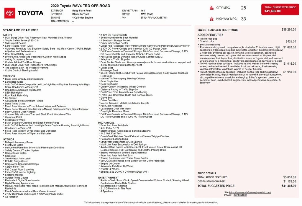 2020 Toyota RAV4 AWD with ONLY 18,679 miles 2.5L 4cylinder engine and automatic transmission. Ruby Flare Pearl exterior and Ebony "Soft Tex" interior. TRD Off Road Package, TRD Off Road Weather Package, TRD Off Road Technology Package, Overhead 360 Degree View, Smart Phone Charging, Birds Eye View Camera, Heated & Ventilated Front Bucket Seats, 8" Touchscreen Navigation Display, 11 Speaker JBL Premium Audio, Dynamic Voice Recognition. Very Clean Car One Owner! Clean Carfax! Located in Spring, Texas on Interstate I-45 North minutes from The Woodlands, Tomball and Conroe. CALL US CLICK US COME SEE US 832-446-4000.